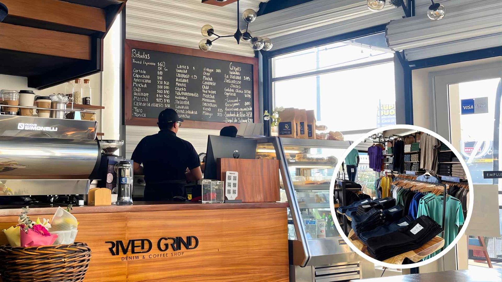 Rived Grind llegó para mezclar —literalmente— dos placeres universales: la buena mezclilla y el buen café. El resultado: un espacio tan curioso y estiloso que parece salido de un editorial de moda… pero con olor a café colombiano recién molido.